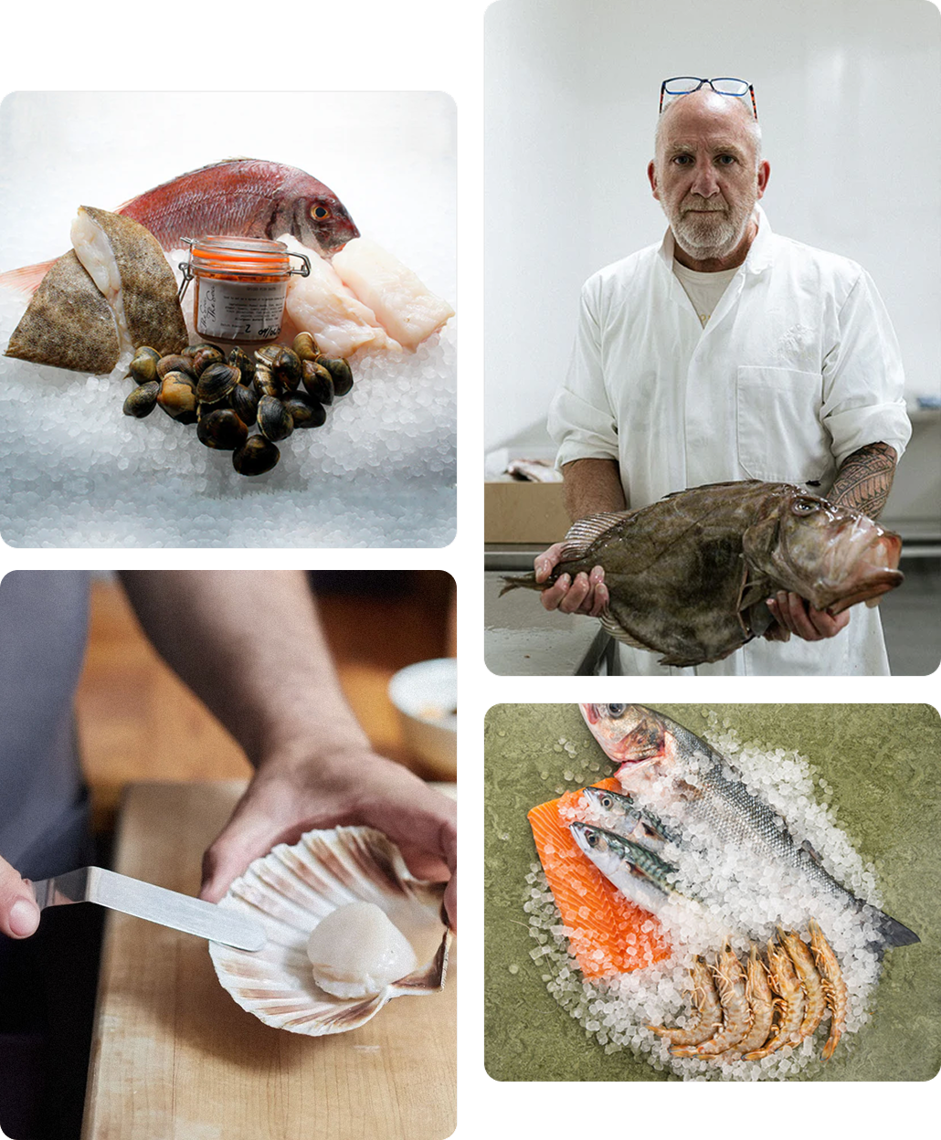 We source our seafood directly from day boats, divers, and reputable regional markets in Cornwall, Devon, Dorset, and the Inner Hebrides, Orkney, and Shetland Islands. We take pride in managing every aspect of the supply chain. Our dedicated transport team collects the day's catch directly from boats, divers, and trusted small-holder farms that prioritize good handling practices.